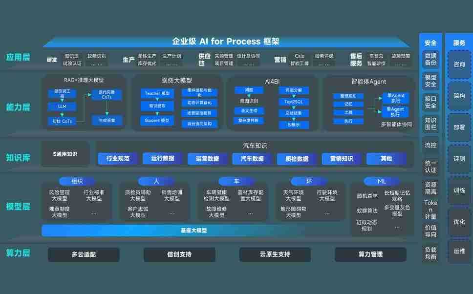 端到端的一站式AI工作空间深度融合了从企业战略规划到日常经营的全流程业务板块,,,定向解决车企内部领域多、、、部门多、、、、链条长、、、、场景碎片化等难题,,,,支持车企快速构建以AI为核心的生产力写作体系,,,,实现任务执行与AI能力的无缝集成与交互